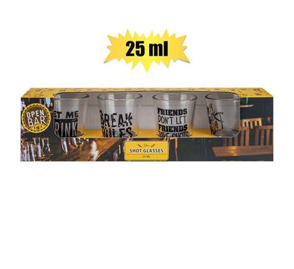 | Description | Shot-glass set of 4, 25ml printed asstd |