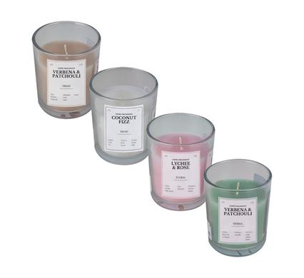| Description | Candle in holder gls round 7x8cm scented |