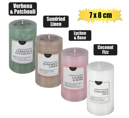 | Description | Candle pillar round asstd 7x8cm scented |