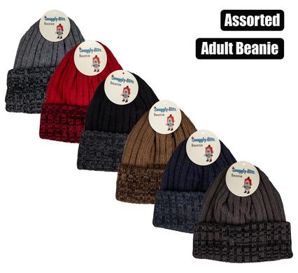 | Description | Beanie adult knitted fleece 29x22cm asst |